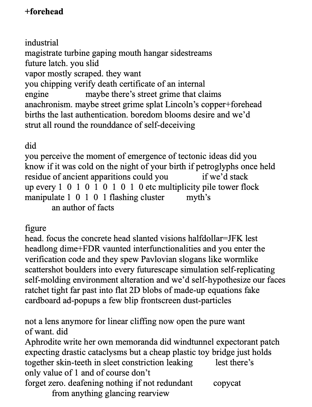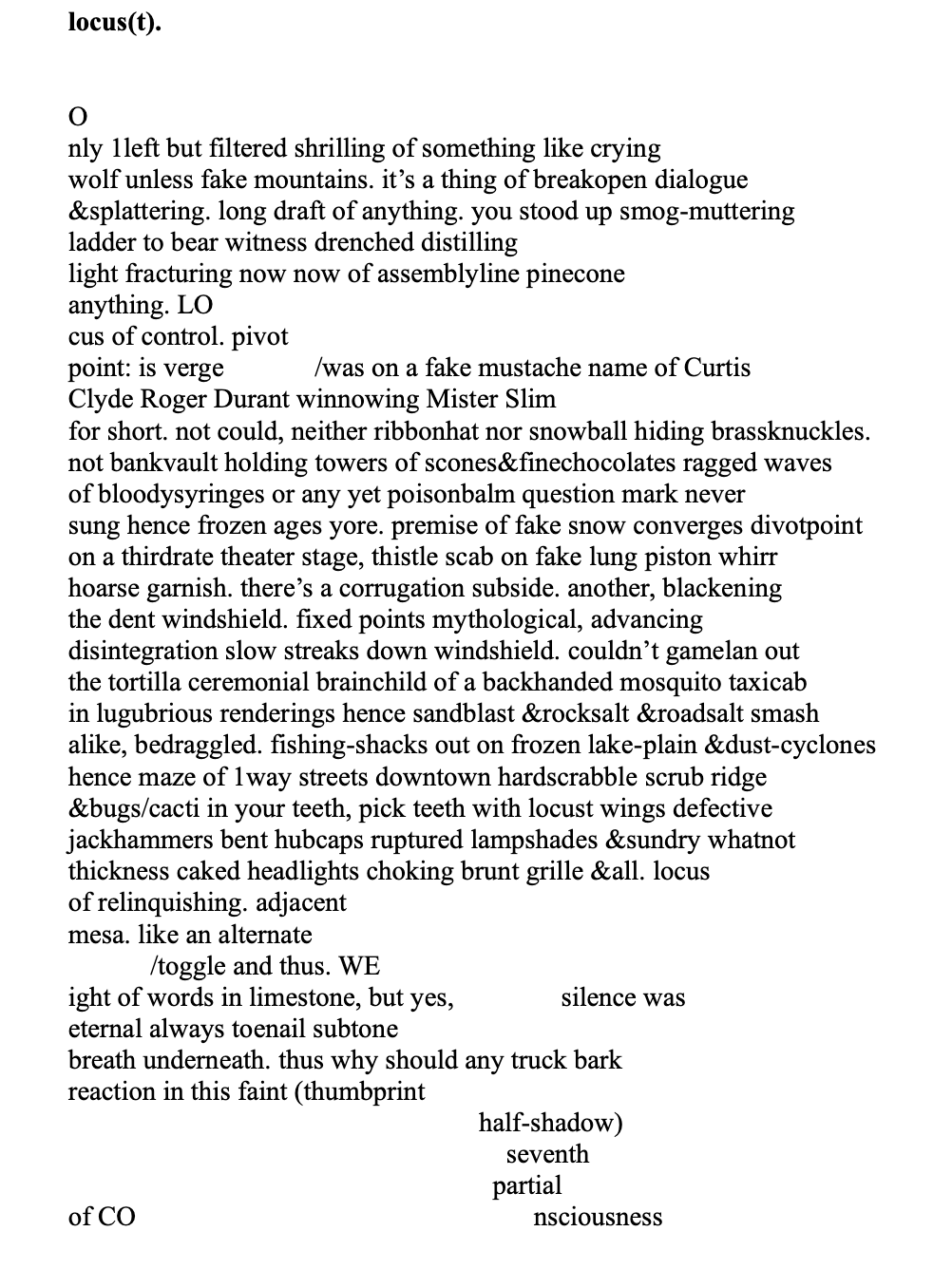 Neil Flory is the author of mudtrombones knotted in the spill (Arteidolia Press, 2023). Nominated for a 2023 Pushcart Prize by swifts & slows, Flory’s poetry has also appeared in various other journals such as dadakuku, The Gorko Gazette, shufPoetry, Word For/Word, and Fleas on the Dog. Beyond his literary work, he is a composer of experimental music, a college music professor, and a pianist whose enthusiasm for improvisation in live recital settings knows no bounds. He lives among the wooded hills and lakeshores of Western New York State with his wife, published poet and fiction writer Elaine Flory, and their three flamboyant cats.