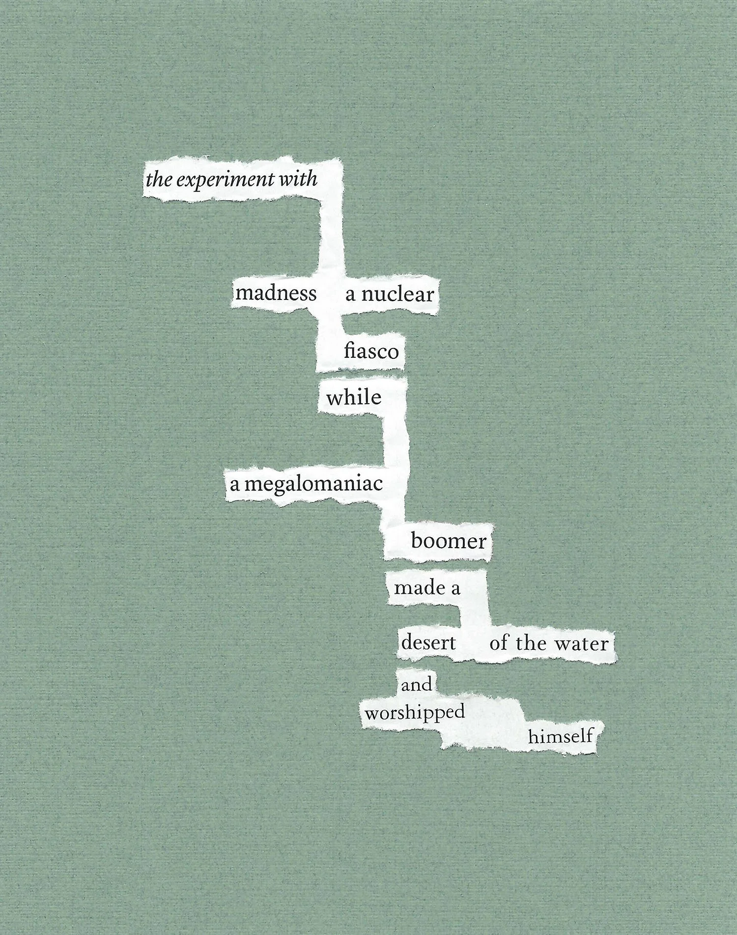 J.I. Kleinberg lives in Bellingham, Washington, USA, and on Instagram @jikleinberg. Her work has been published in print and online journals and anthologies worldwide. Chapbooks of her visual poems, How to pronounce the wind (Paper View Books) and Desire’s Authority (Ravenna Press Triple Series No. 23), were published in 2023; a full-length volume, She needs the river (Poem Atlas), was published in 2024.